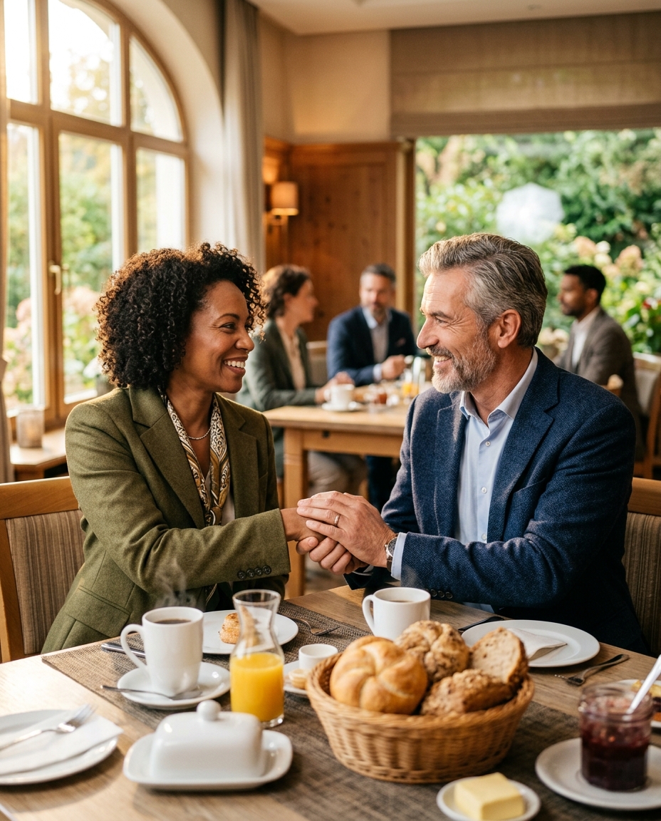 Frühstück im Parkhotel Green Garden, konzentriertes Networking, konkrete Empfehlungen — und um 8:30 bist du zurück im Tagesgeschäft.